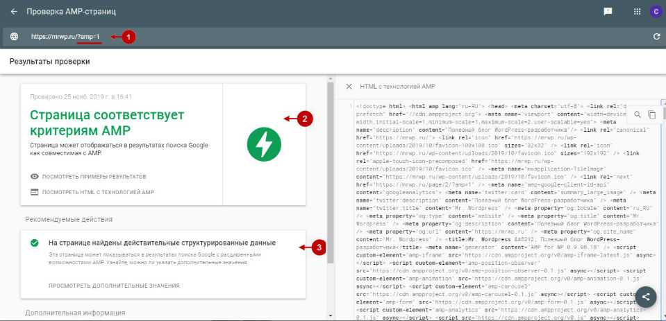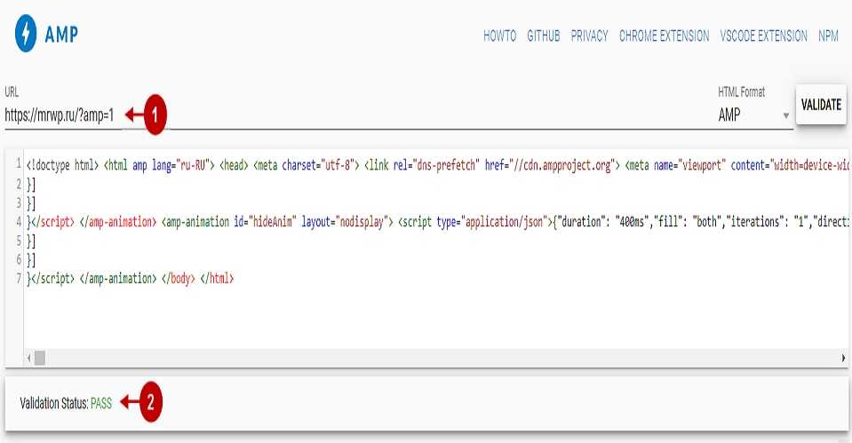 №2. Онлайн валидатор AMP на сайте AmpProject.org