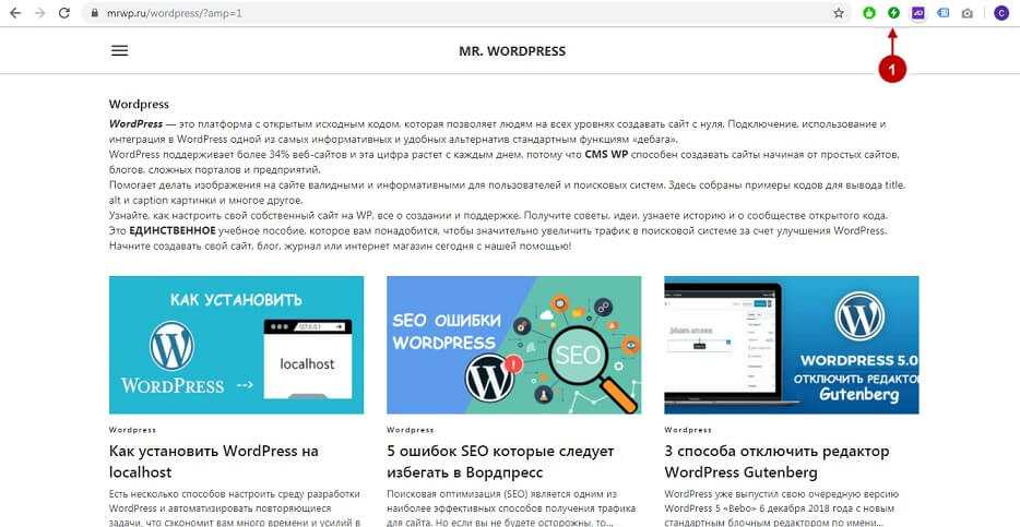 Если есть какие-либо предупреждения или ошибки, то щелчок по значку отобразит предупреждения и грубые ошибки. Значок расширения становится синим, если страница является страницей AMP и доступна через <link rel= «amphtml» href=»…»>, и при нажатии на него будет загружена версия AMP этой страницы.