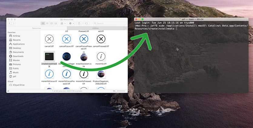7. В папке Contents/Resources/ находим файл createinstallmedia и перетаскиваем его в открытое окно Terminal (в команду добавится путь к файлу)