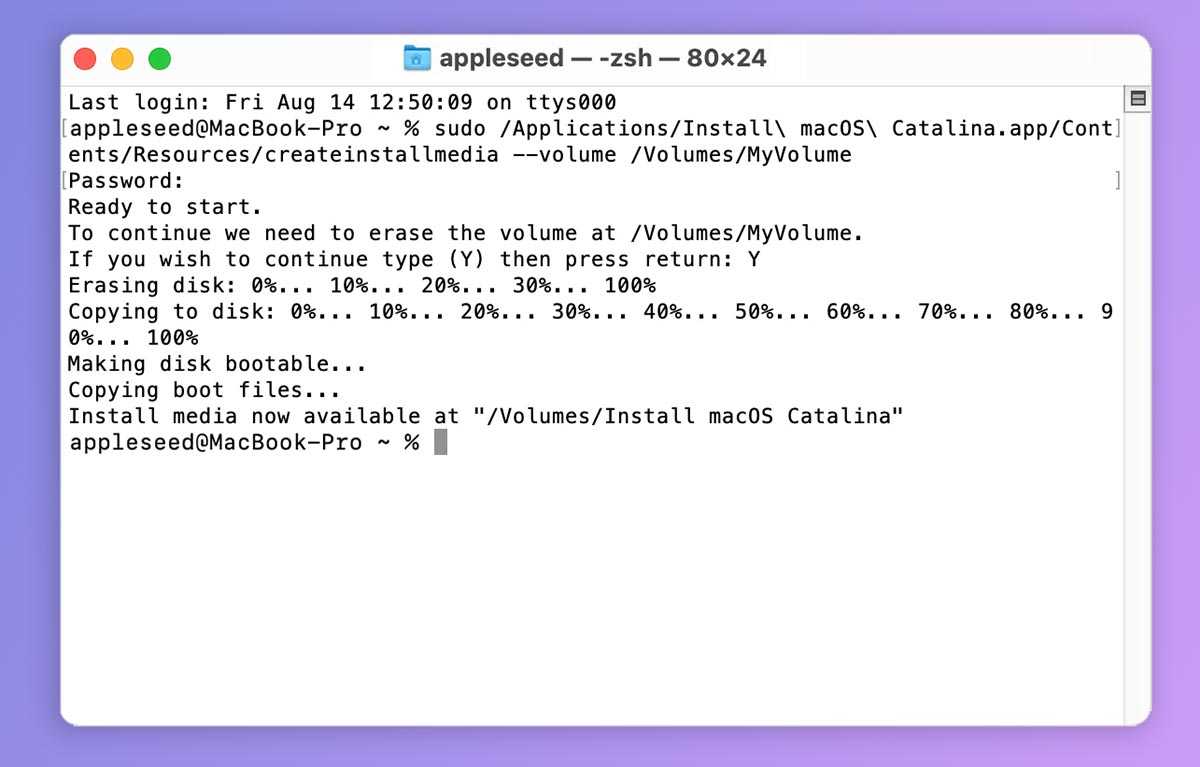 Когда процесс копирования завершится (примерно 15-20 минут), получите готовую флешку для установки macOS Catalina.