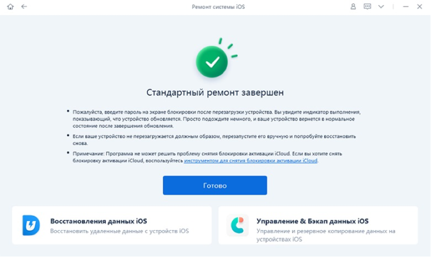 Шаг 6. Процесс восстановления должен подождать несколько минут. После успешного ремонта iPhone можно использовать в обычном режиме.