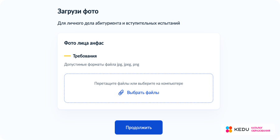 В данном случае потребуется обычная фотография размера 3х4 сантиметра для будущих студенческого и читательского билета, размером не более 20 Мб.