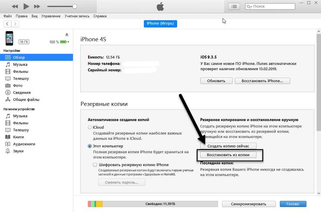 Также стоит учесть, что все данные с вашего устройства будут удалены и заменены той информацией, которая была в бекапе. Поэтому настоятельно рекомендуем сначала создать резервную копию текущего состояния. Это можно сделать, опять же, через iTunes. Готово? Отлично! Теперь переходим к процедуре восстановления: