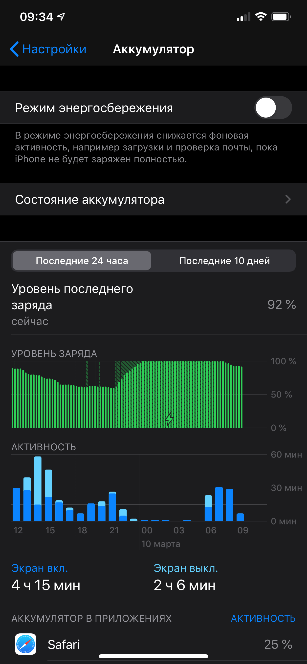 Как и в случае с разрядкой, я оставлял iPhone на зарядке на ночь, чтобы он наверняка зарядился полностью.