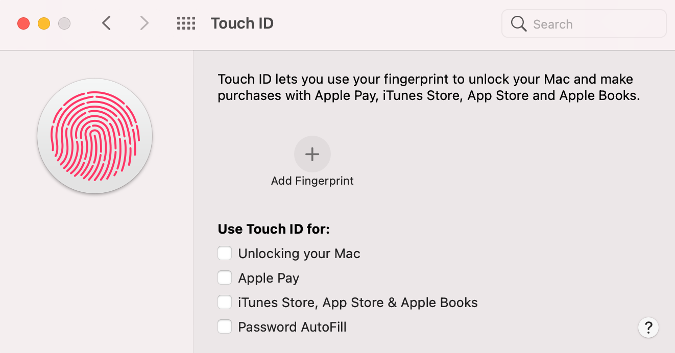 Возможно, вы отключили Touch ID для определенных задач или приложений. Если вы заметили, что Touch ID вашего Mac отлично работает с большинством сервисов, за исключением, например, Apple Pay, то это должно быть так.