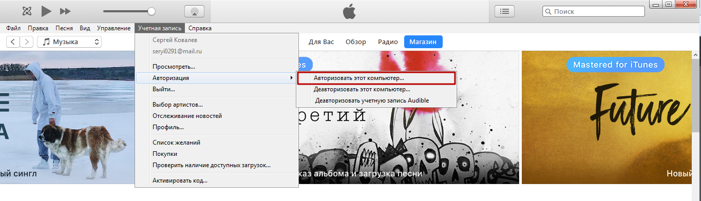 Контент, хранящийся на диске ПК, пользователю вовсе не стоит задумываться об аутентификации и авторизации компьютера. Однако, если нужно скопировать в память гаджета фильмы, музыку или другие файлы, приобретённые в iTunes Store