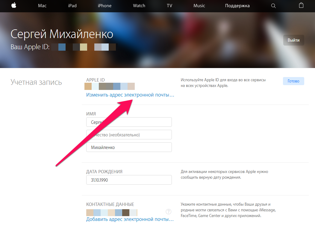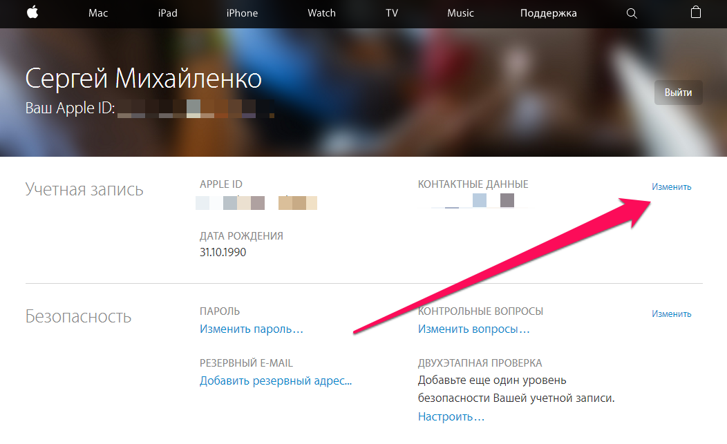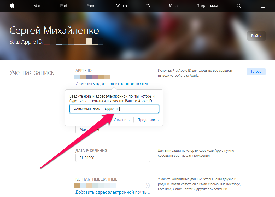 Шаг 2. В секции «Учетная запись» нажмите «Изменить»Шаг 3. Нажмите на ссылку «Изменить адрес электронной почты»Шаг 4. Измените логин вашего Apple ID на старый почтовый адрес, пароль для которого iCloud у вас запрашиваетШаг 5. Нажмите «Продолжить», после чего выйдите из учетной записи Apple ID