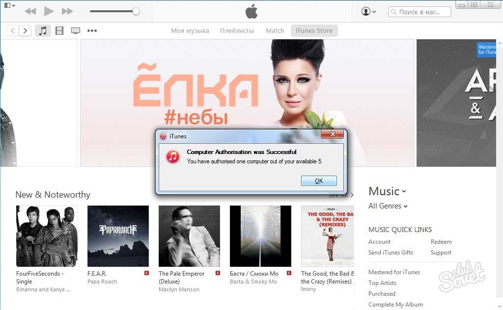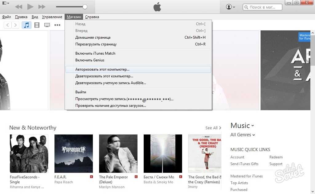 ранних версияхплеера iTunesсистемы WindowsАвторизация компьютера