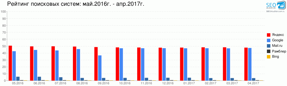 В 2017 году была собрана весьма красноречивая статистика (собранная порталом SEO-Auditor), утверждающая, что свыше 90% отечественных юзеров искали информацию в одной из 2-х поисковых систем – Google или Яндекс. Системам Mail.ru и Рамблер оставались жалкие крохи внимания пользователей, а о существовании Bing и Yahoo многие российские юзеры и вовсе не подозревали.