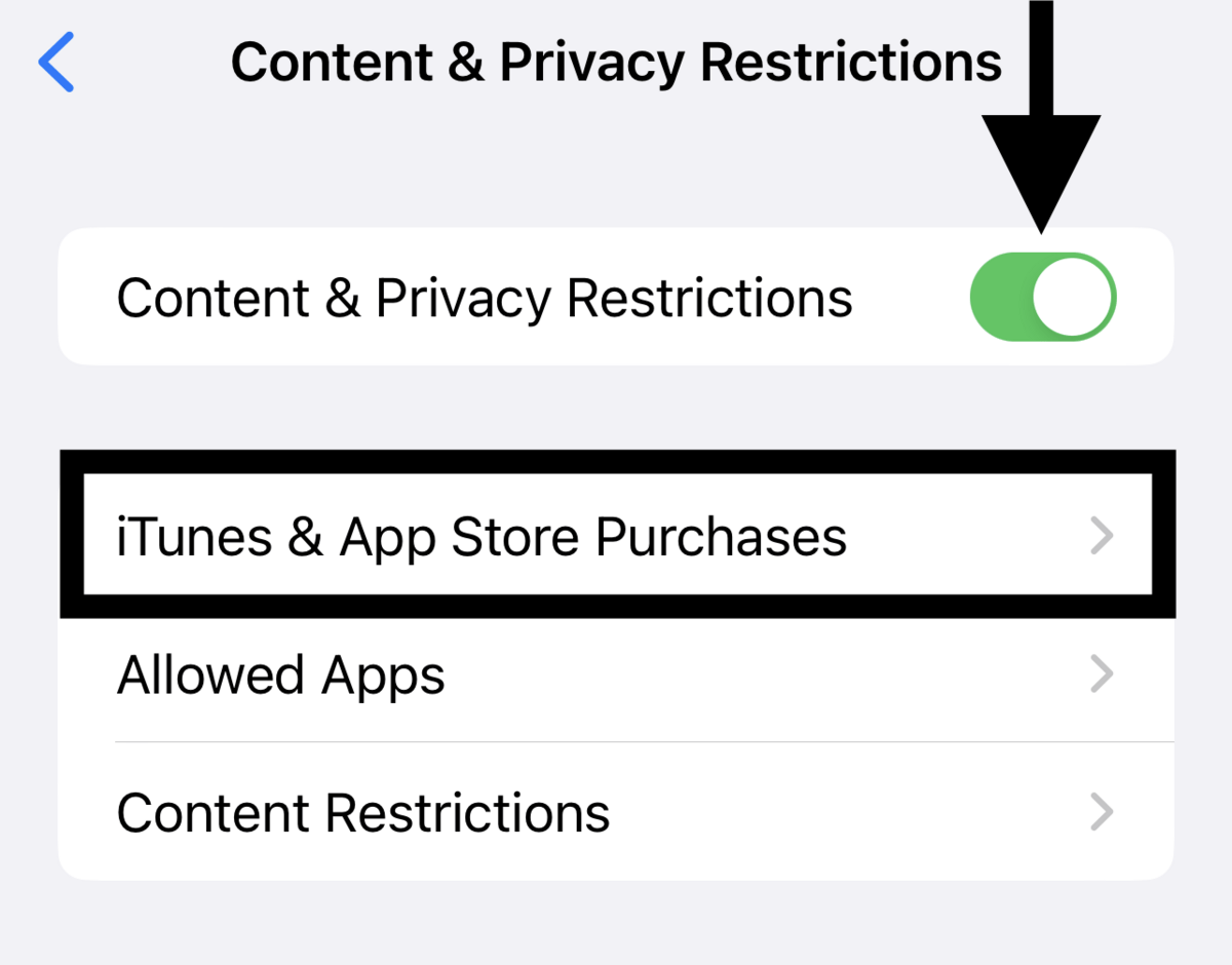 - 2. Tap on Restrictions and navigate to the In-App Purchases and iTunes options and make sure the Restriction’s toggle is off next to iTunes and In-App Purchases.