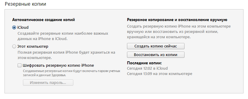 3. Создаем бэкап нашего устройства в iTunes. Необходимо выключить функцию «Шифровать резервную копию iPhone», так как в противном случае мы не сможем посмотреть и тем более отредактировать содержимое бэкапа.