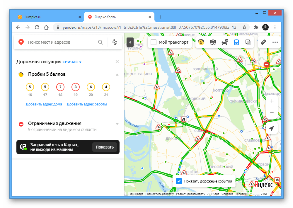Использовать Яндекс.Карты с целью просмотра указанной информации намного удобнее из-за более детальной карты пробок с отдельной шкалой загруженности дорог и весьма точной схемы движения транспорта с обновлением в режиме реального времени. За счет этого можно всегда получать свежую информацию и планировать путь с минимальными отклонениями.