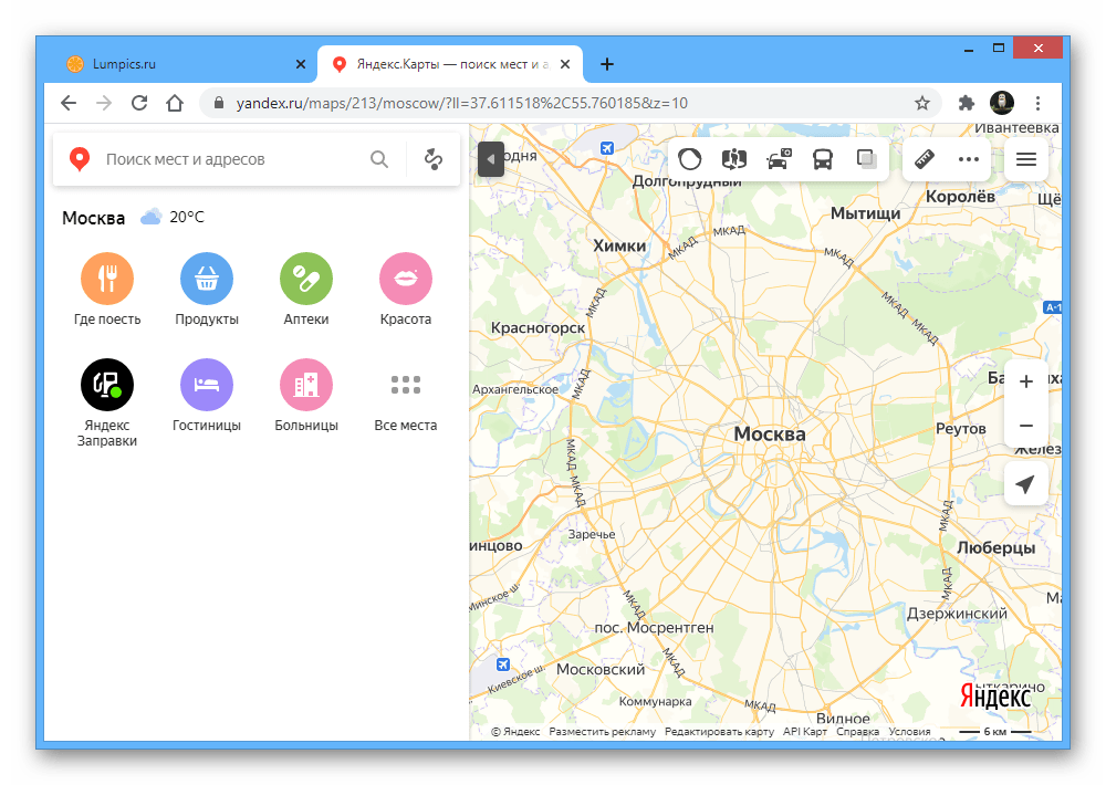 Каждый рассматриваемый сервис предоставляет встроенную систему поиска объектов на карте, представленную в верхней левой части окна браузера. На сайте Google Maps можно быстро найти собственное местоположение, в том числе указанное в настройках аккаунта, определенное заведение из списка или любое другое место с помощью подсказок поисковой системы.