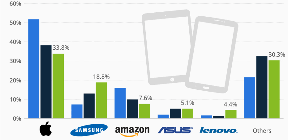 Samsung производит множество устройств с разными операционными системами, в то время как у Apple есть только собственная система iOS, что дает Samsung преимущество, когда речь идет о доле рынка мобильных устройств.