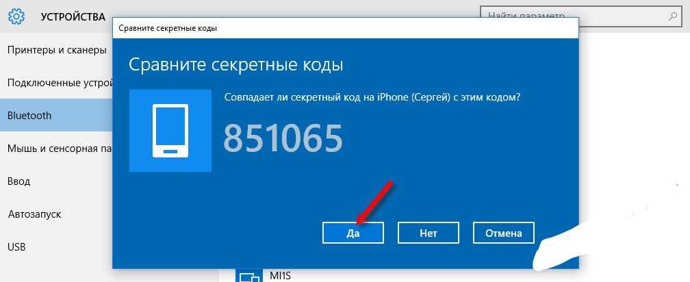 На Айфоне нужно разрешить создание пары, а в Windows подтвердить, что код совпадает.
