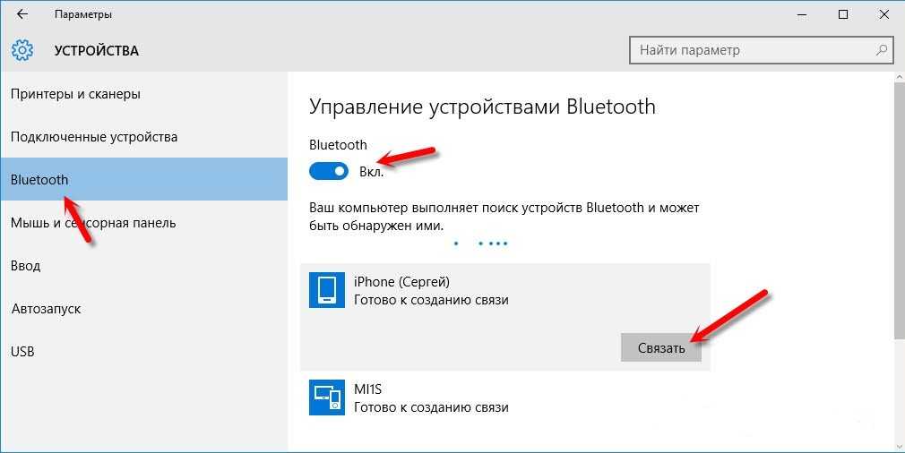 Для создания пары на ПК или ноутбуке под управлением Windows нужно перейти в «Панель управления» -> «Устройства» -> «Bluetooth». В списке нужно выбрать «iPhone» и нажать на появившуюся рядом с ним кнопку «Связать».