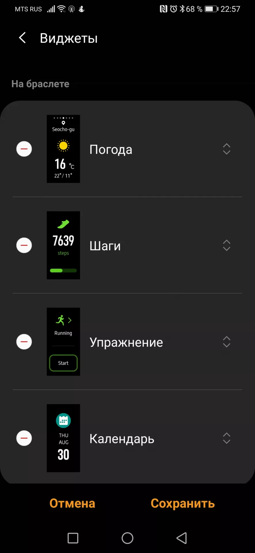 Но если поставить приложение Samsung Health, то этот список можно расширить многократно вплоть до гребли на каноэ и танцев!