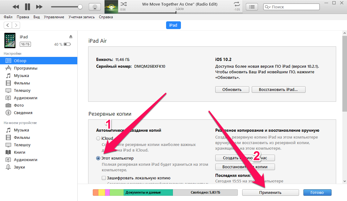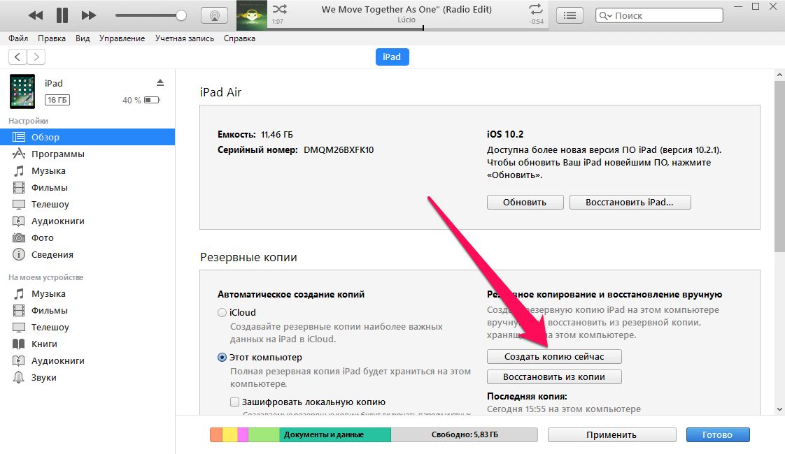 Резервные копии этого iPad не создавались 10 нед. Резервные копии создаются, когда iPad подключен к компьютеру, заблокирован и подключен к сети Wi-Fi