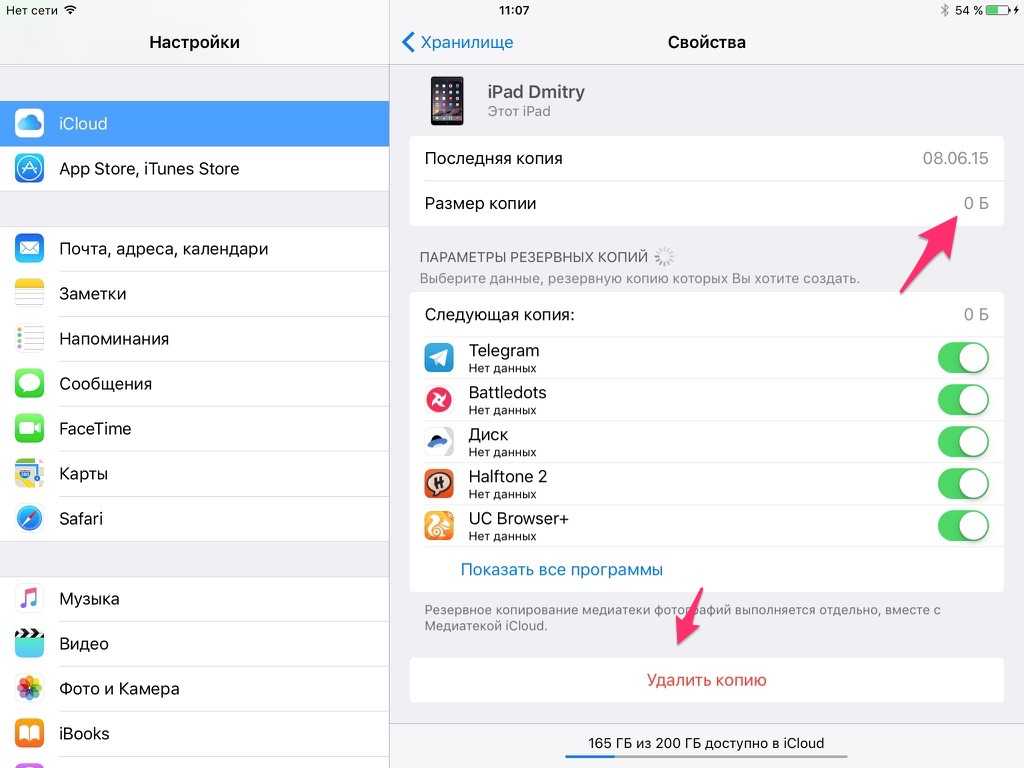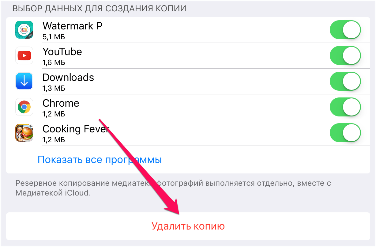 Для удаления бэкапа из iCloud производится ряд действий: