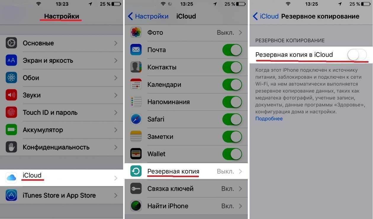 - Сдвиньте тумблер пункта “Резервное копирование в iCloud”.