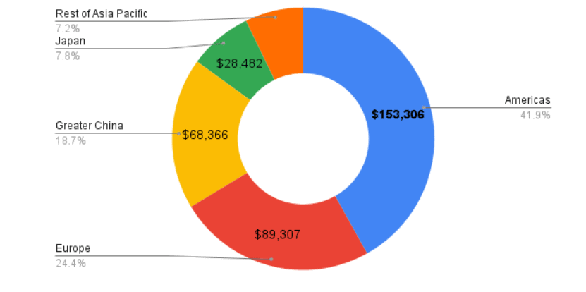 Выручка Apple по регионам:
