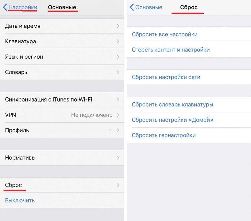 Сбросить настройки айфона до заводских