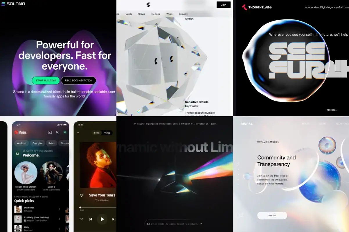 Важное наблюдение: глассморфизм, похоже, на подъёме. Сейчас на многих сайтах дизайнеры используют эффект матового стекла на панелях навигации, кнопках или декоративных элементах