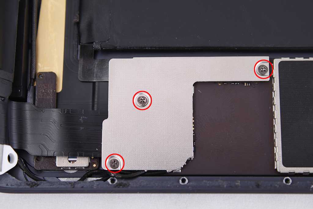 Некоторые устройства могут иметь два винта, один из которых сковывает контактную площадку, которая расположена над винтом, указанной красным на фото.