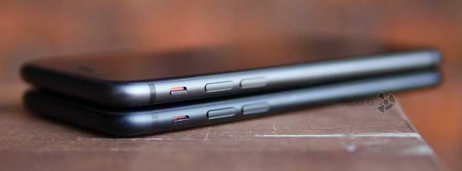 По бокам ровным счётом ничего не изменилось. Разве что матовый чёрный в семёрке превратился в матовый тёмно-серый.