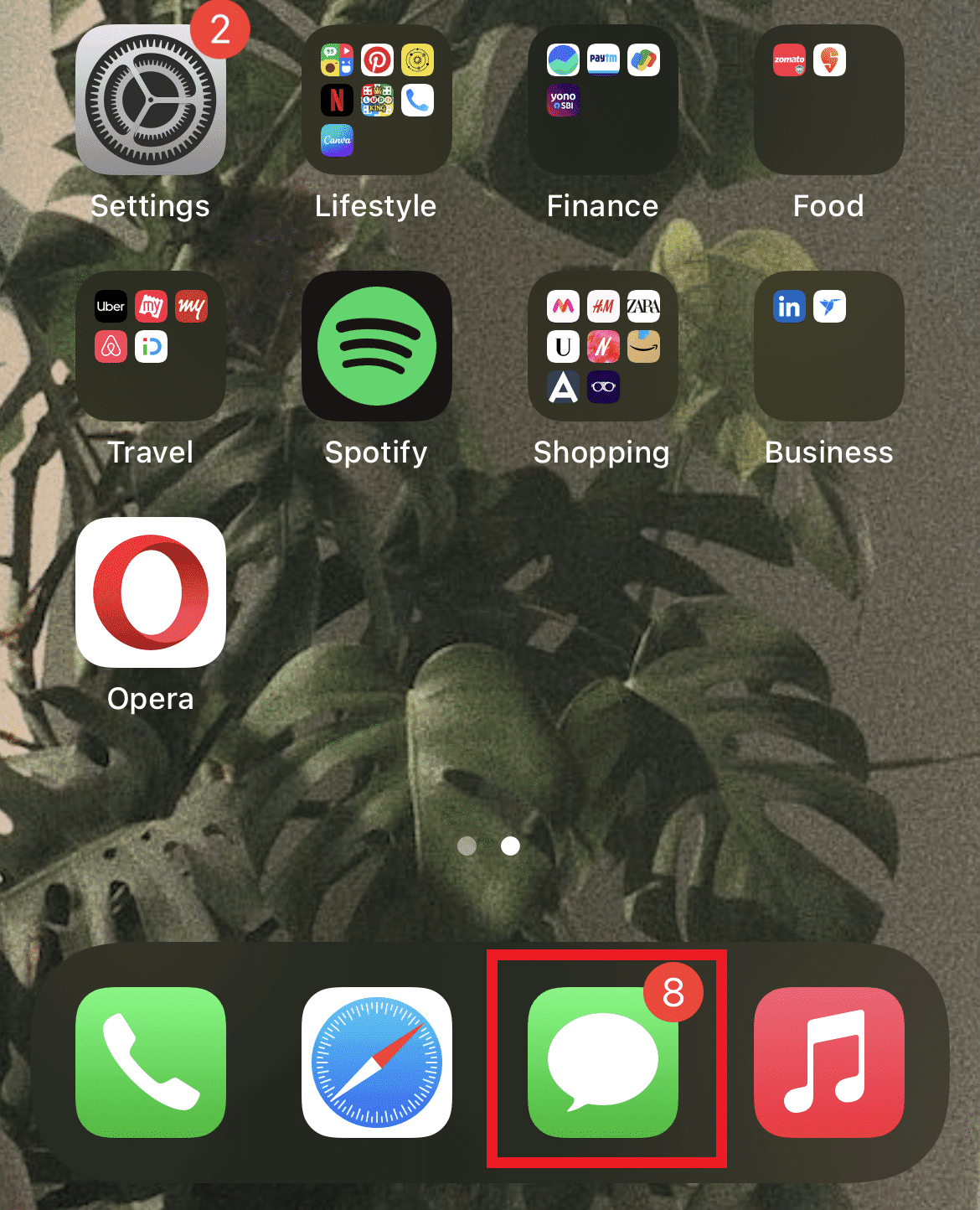 5. Затем проведите пальцем вниз и нажмите «Сообщения».