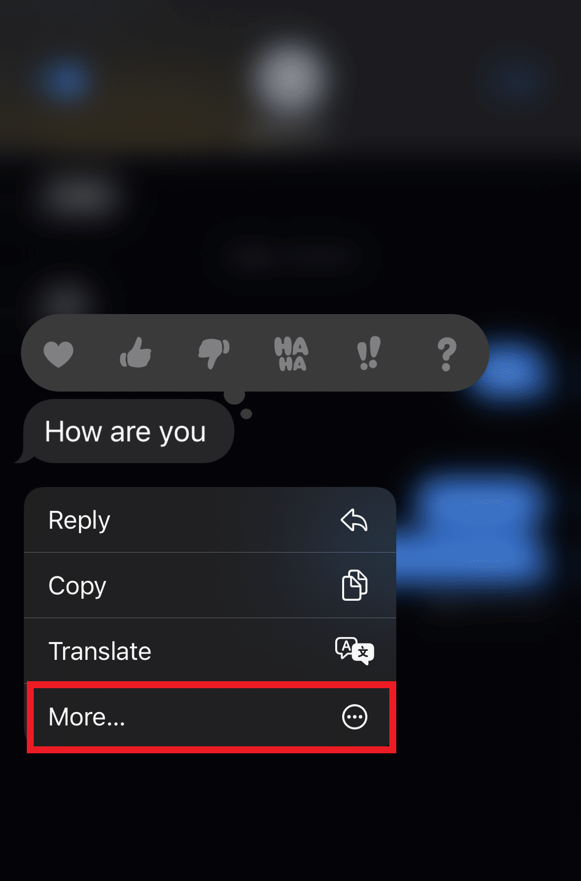 3. Нажмите и удерживайте iMessage другого человека, которого хотите удалить, и нажмите «Еще».