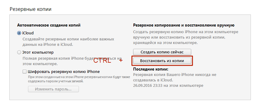 С помощью Айтюнс также можно откатить систему из резервной копии