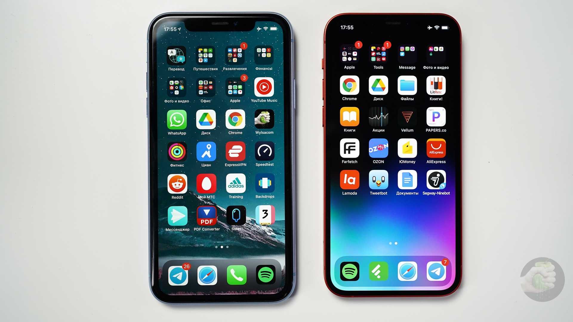 iPhone XR слева и iPhone 12 справа. Фото: Александр Побыванец / Wylsacom Media