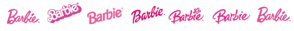 Менялся и логотип Барби, но единый стиль сохраняли и для него.