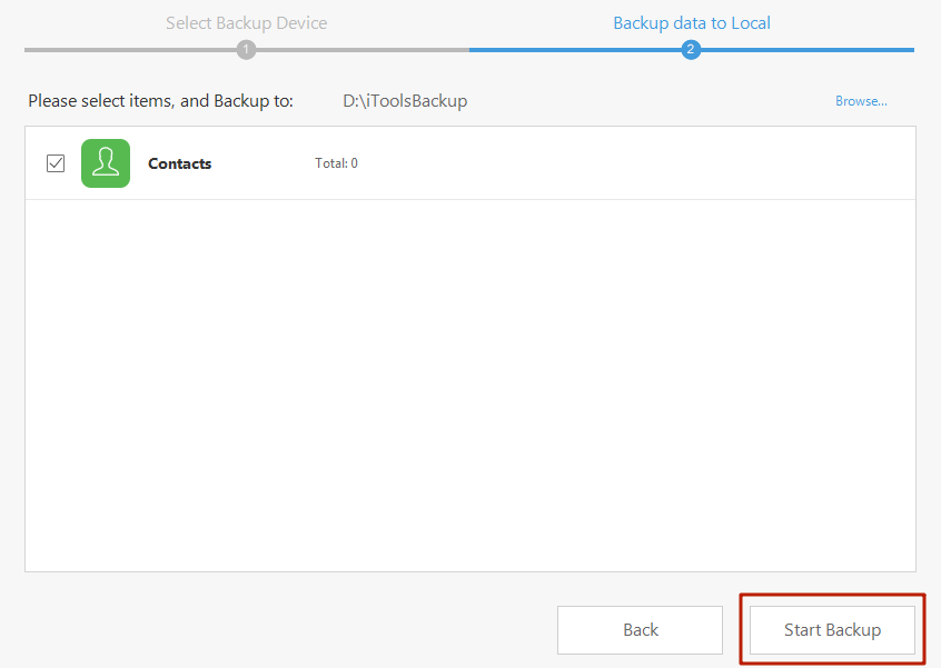 Шаг 4. Дождитесь, когда iTools отыщет все контакты на iPhone и кликните на «Start Backup».