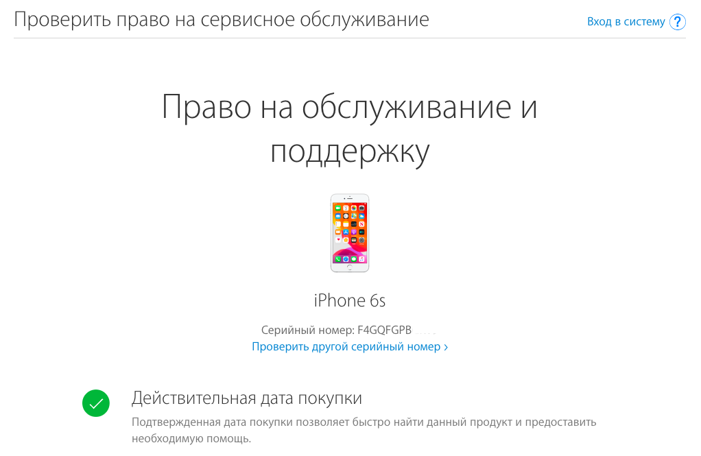 Помимо IMEI, каждый Apple-гаджет имеет свой уникальный серийный номер, который можно задействовать для проверки его подлинности на официальном сайте Apple.