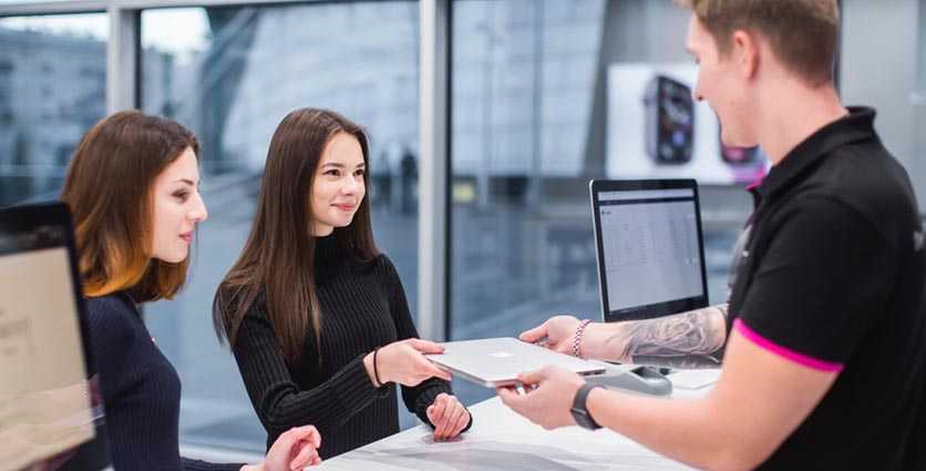 Либо можете записаться через сайт Apple, выбрав ближайший сервис re:Store и указав удобное время для приема.