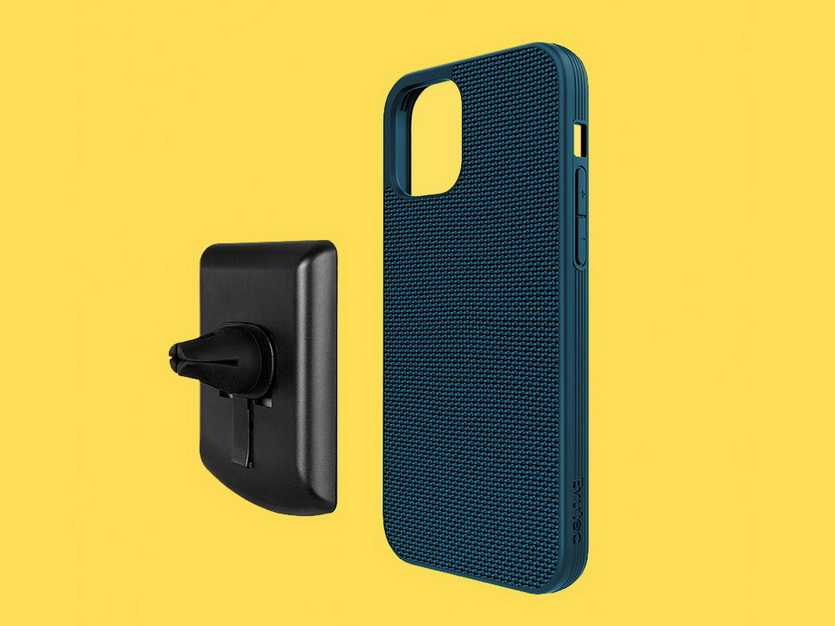 Внутри чехла спрятаны металлические усиливающие пластины для установки смартфона в комплектный автомобильный держатель или сторонний аксессуар с магнитным креплением.