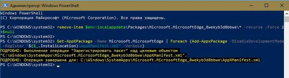 Вторая установит новую копию браузера Edge из локального хранилища, в конечном итоге вы получите Edge как после чистой установки Windows 10.