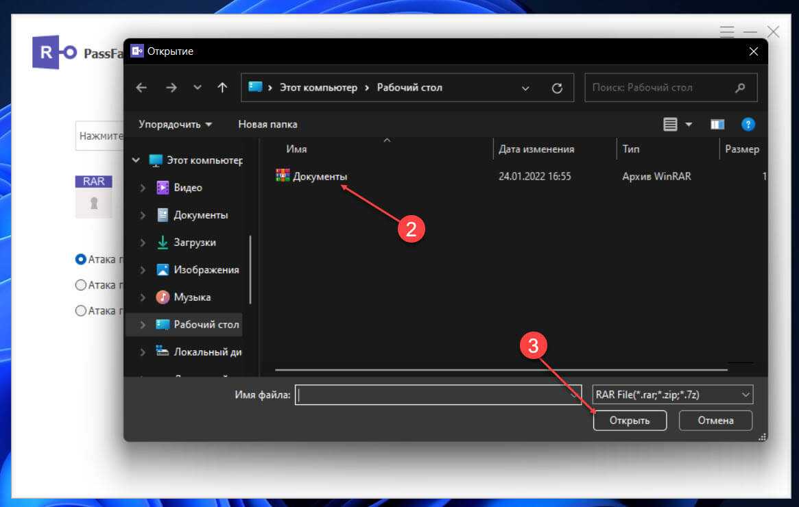 Шаг 3: Выберите архив, для которого необходимо сбросить пароль и нажмите кнопку «Открыть».