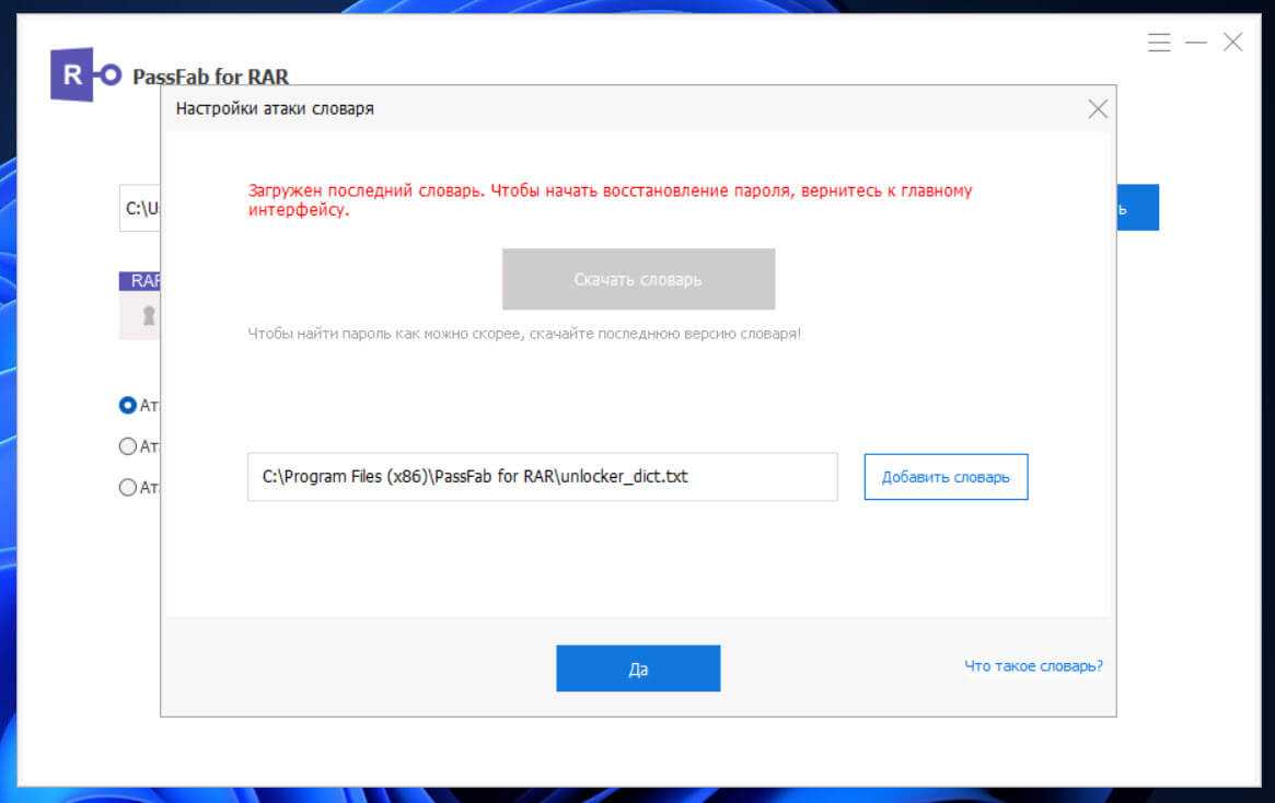 атака по словарям, когда пароль может быть популярной фразой. Перебор ограничен готовым списком паролей, так называемым словарём. В программах для восстановления паролей от Пасковери можно одновременно подключить до 4-ёх словарей: