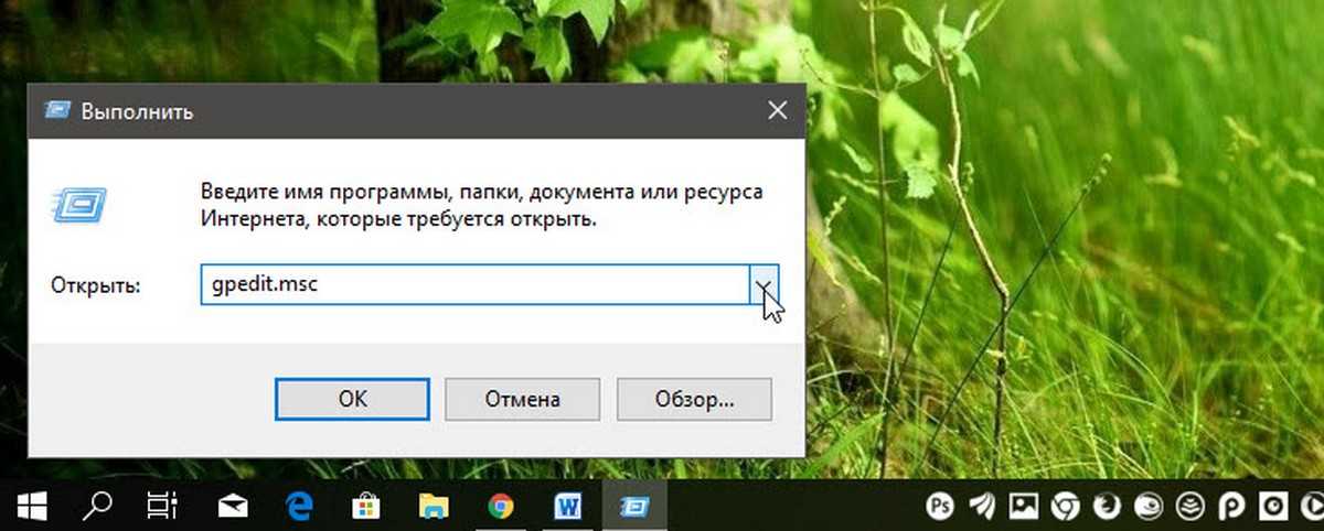 - Нажмите комбинацию клавиш Win + R, в окне «Выполнить» введите gpedit.msc, затем Enter.