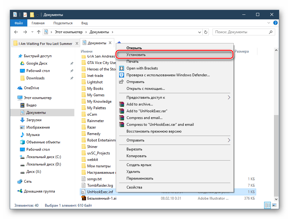 Нажмите по файлу правой кнопкой мыши и выберите пункт «Установить». Никаких визуальных уведомлений об инсталляции при этом не будет отображено, поэтому вам остается проверить реестр – доступ к нему должен восстановиться.