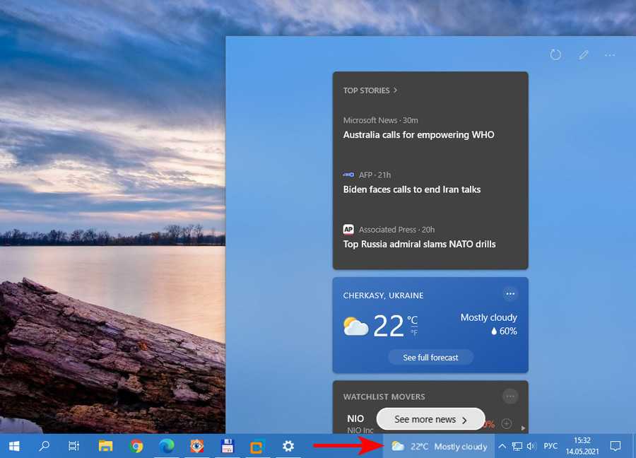 В каналах бета-версии и предварительного просмотра Microsoft также перемещает виджет новостей на панель задач. Идея этой функции заключается в том, что вам больше не нужно открывать компьютер, чтобы прочитать новости и другую информацию.