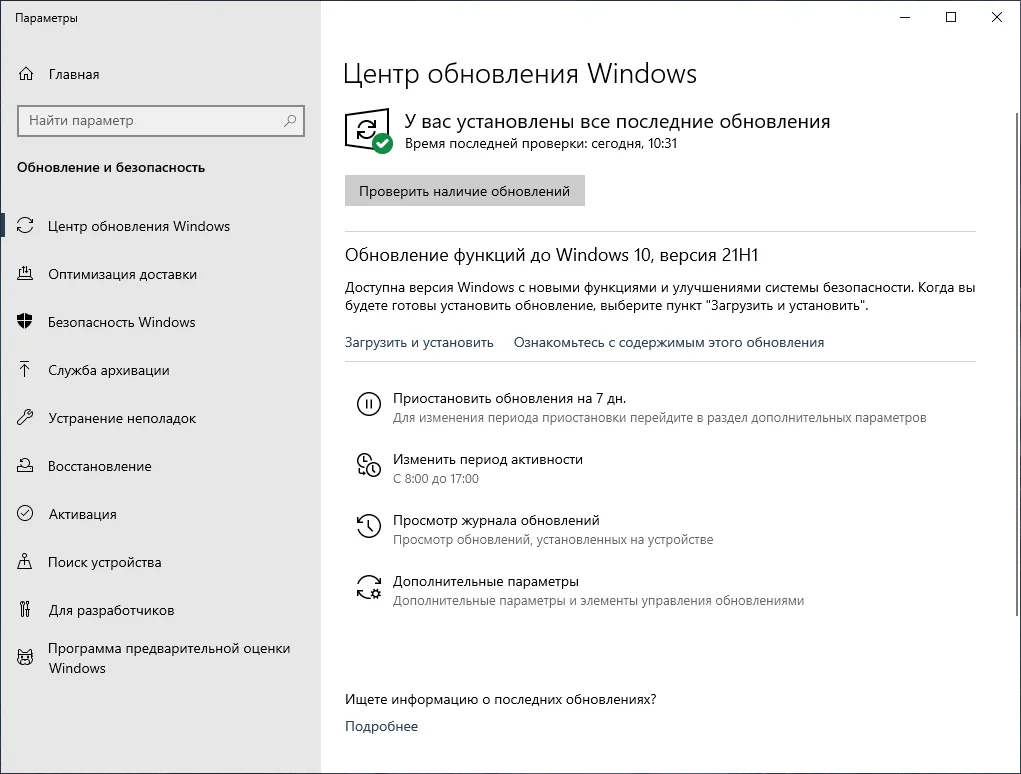 Однако, если вы используете версию Windows 10, срок поддержки которой заканчивается, то в этом случае Microsoft может отправить Windows 10, версия 21H1 на ваш компьютер в качестве обязательного обновления. Проверьте, подпадает ли ваше устройство под принудительное обновление на официальной странице «Информация о выпуске Windows 10».
