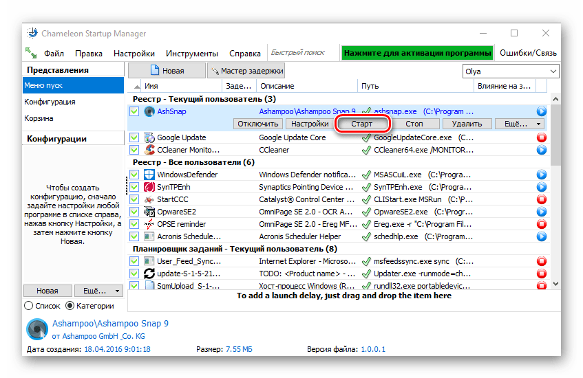 Обратите внимание, что текущий статус приложения можно увидеть в столбце «Состояние»