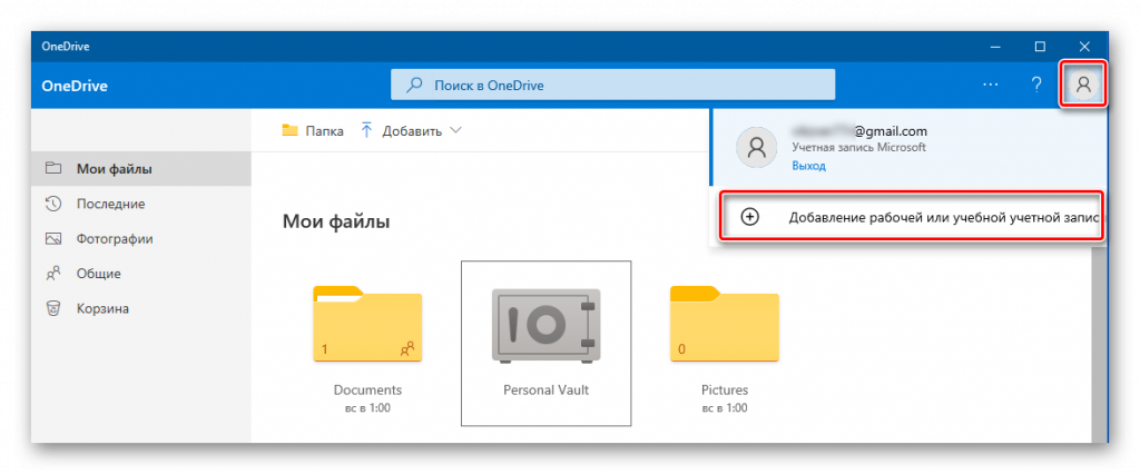 В OneDrive можно добавить несколько учетных записей и переключаться между ними из меню.