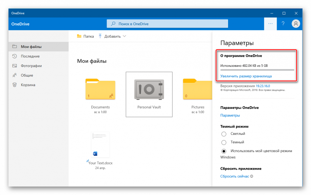 Единственный плюс программы – интеграция с пакетом M$ Office и увеличенный объем хранилища на отдельных тарифных планах. Остальные – непривилегированные пользователи Windows 10 получают всего 5 Гб дискового пространства.
