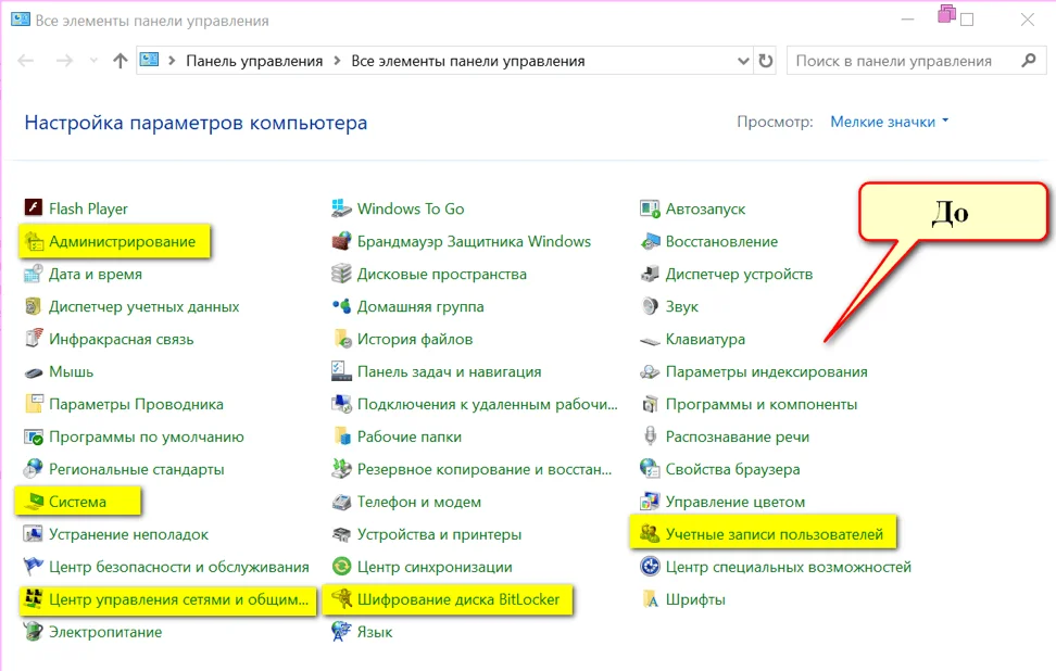 Рис.17 Список элементов панели управления до изменения параметра локальной групповой политики