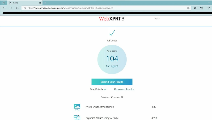 We used the industry-standard WebXPRT 3 benchmarking tool to correctly assess the performance of Google Chrome and Microsoft Edge. We repeated the testing with a fresh install of Google Chrome and Microsoft Edge with no extensions enabled, and the findings were very similar. Microsoft Edge had a score of 104, while Google Chrome received a score of 100.
